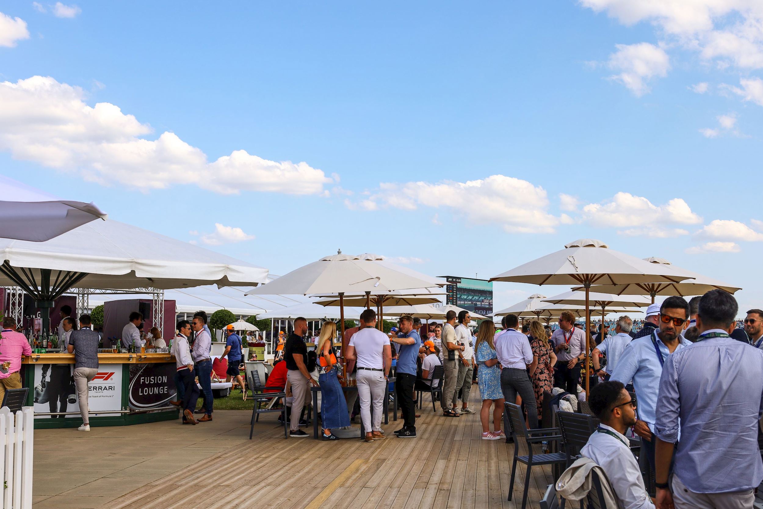Throughout the day, guests can enjoy gourmet cuisine served from interactive chef stations, complemented by a fully inclusive drinks offering featuring premium alcohol brands. Live DJs, music, and entertainment run alongside the racing, creating a festival-style atmosphere unique to Fusion Lounge hospitality.